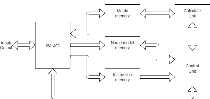 У даній роботі на основі примітивних програмних алгебр виводиться алгебраїчна характеристика класу матричних перетворень методом ізоморфних відображень на алгебраїчну характеристику классу векторних перетворень. В роботі також описано апаратну реалізацію прискорювача матричних операцій на основі отриманих даних. Актуальність роботи обумовлена тим, що сьогодні відбувається стрімке проникнення комп'ютерних технологій в усі сфери життєдіяльності соціуму і, як наслідок, кількість даних, які потрібно опрацювати за одиницю часу постійно зростає. Велика кількість задач, пов’язаних зі значними об’ємами складних обчислень вирішується методами, що ґрунтуються на матричних операціях. Тож дослідження матричних обчислень та їх прискорення є досить важливою задачею. У даній роботі в якості внеску в даному напрямку пропонується дослідження класу матричних перетворень за допомогою сигнатурних операцій примітивної програмної алгебри – багатомісної суперпозиції, галуження й циклування, що представляють собою уточнення найбільш поширених управлінських структур у більшості високорівневих мов програмування, а також ізоморфного відображення. Сигнатурні операції примітивної програмної алгебри в поєднанні з базовими частково-рекурсивними матричними функціями та предикатами дозволяють реалізувати множину усіх частково-рекурсивних матричних функцій та предикатів. Отримано результат про базис матричної примітивної програмної алгебри. Ізоморфізм забезпечує відтворення частково-рекурсивних функцій та предикатів для матричних перетворень як образів частково-рекурсивних векторних функцій та предикатів. Повноту алгебраїчної системи матричних перетворень забезпечено завдяки наявним результатам по виведенню повноти алгебраїчної системи для векторних перетворень. Створена іменна модель матричних даних, оптимізована під використання в розробці апаратної реалізації. В апаратній реалізації забезпечена підтримка сигнатурних операцій примітивної програмної алгебри та реалізована апаратна підтримка ізоморфного відображення. Реалізована апаратна підтримка функцій суми, множення та транспонування матриць, а також предиката рівності двох матриць. Підтримка сигнатурних операцій примітивної програмної алгебри забезпечується проектуванням контролюючої частини матричного обчислювального апарату на основі архітектури RISC. В основі апаратної підтримки ізоморфізму лежать лічильники, вони дозволяють інтуїтивно реалізувати циклування у функціях ізоморфних відображень. Швидке виконання векторних операцій забезпечується принципом комп’ютерних обчислень SIMD.
